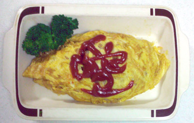 ケチャップで「愛」と書いてみたのですが、読めん(苦笑)