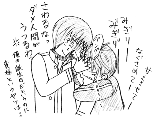 そして、お祝い絵でも何でもない、御霧に甘えて怒られている七代(=自分)の絵を上げときます。